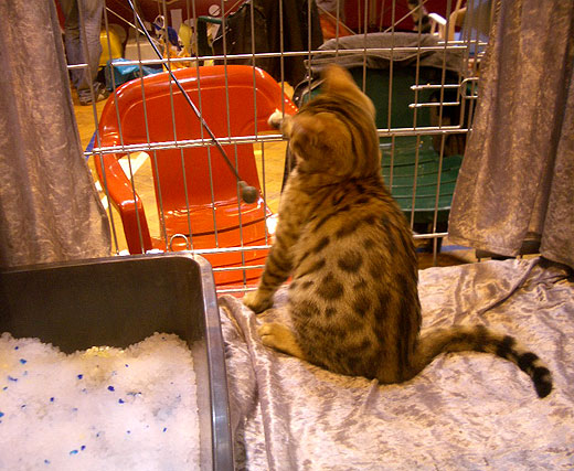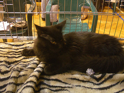 Мне выставка понравилась (я вообще кошек обожаю)! Грусную и испуганную кошку только одну видела, остальные или дрыхли, или играли, или невозмутимо возлежали и с некоторым пренебрежением взирали на суетящихся вокруг людей. К моей радости было много мэйн кунов — это мои любимые кошки. В России у меня был мэйн кун — огромный котяра, 8 кг (причём не толстый, а вовсе даже поджарый!), который прожил 19,5 лет! К словам Наташи добавлю, что мэйн кун не только самая крупная порода, но и самая «долгоживущая».