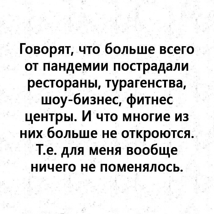 Мы в регионах уже много лет видим все совсем иначе, Москвичам куча разных выплат и социальной поддержки, которых у нас на местах нет и близко (и никогда не будет), даже если взять закон о пенсионном обеспечении, который уж точно должен быть един для всех. Так что законы такие, но не такие Да и в Москве часто шутят что за МКАД-ом жизни нет — действительно жизнь совсем другая Вот и сейчас принимаются очень разные решения в связи с коронавирусом этим, мы подчиняемся решениям нашего губернатора, который трактует спускаемое федеральным центром по своему (и так каждый губернатор) если долго читать между строк, то может статься так, |