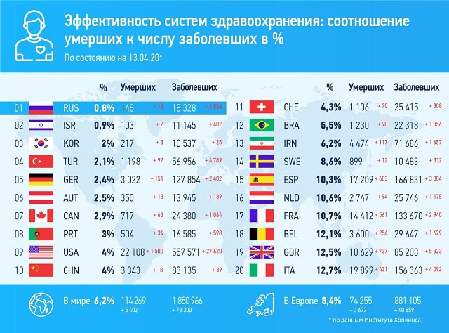 Раньше премьер-министр той же Британии простудившись просто пил Терафлю и выздоравливал, а теперь он полечился несколько дней дома — результата никакого, отвезли в больничку и там он дозрел до интенсивной терапии, то бишь реанимации с вентиляцией легких… пневмания, но малость не такая и на редкость заразная Не могу понять как врачи Британии, спасшие за неделю от смертельного отравления ужасным ядом Скрипаля, не смогли за 10 дней излечить от коронавируса собственного премьер-министра. Где-то нас обманули? ;) https://www.gazeta.ru/politics/news/2020/04/06/n_14257141.shtml https://newdaynews.ru/crimea/688490.html Великобритания. В стране за сутки скончалось рекордное число больных коронавирусом — более 930 человек, всего умерших уже более 7 тысяч человек, общее число зараженных – 60 тысяч...