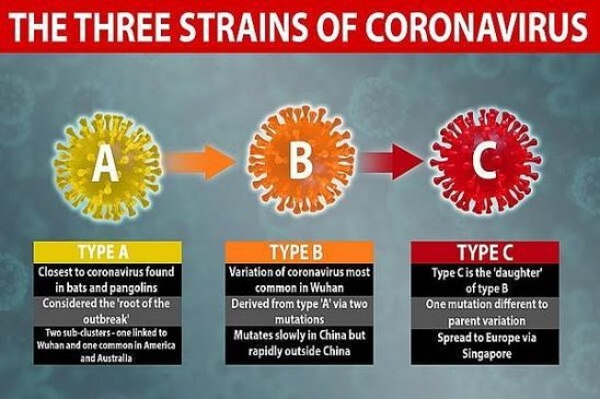 Появился в америке тип А, в Китае мутировал до типа В, он в свою очередь мутировал в Европе на тип С Исследования проводились на пробах отобранных с 24 декабря по 4 марта. Если за два месяца первоначальный COVID мутировал уже два раза (скорость неимоверная), то теперь наверняка существуют еще новые (один или два типа). Может не зря в последнее время американцы усиленно собирали и изучали геномы рас по всему миру..