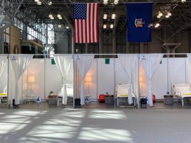 28 мар 2020 в 13:06 (изменено: 28 мар 2020 в 13:24) США. Импровизированный мобильный госпиталь. Заморачиваться с постройкой больницы как китайцы не стали. Главное — флаг... Перегородки для того, чтобы пациенты не видели трупы на соседних койках. Другого смысла в этих перегородках нет.